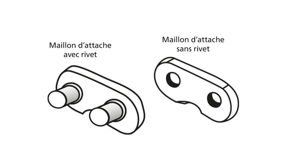 Le maillon de liaison, qui se compose de deux parties, relie le maillon entraîneur et le maillon de coupe. Des rivets spéciaux assurent une liaison mobile.