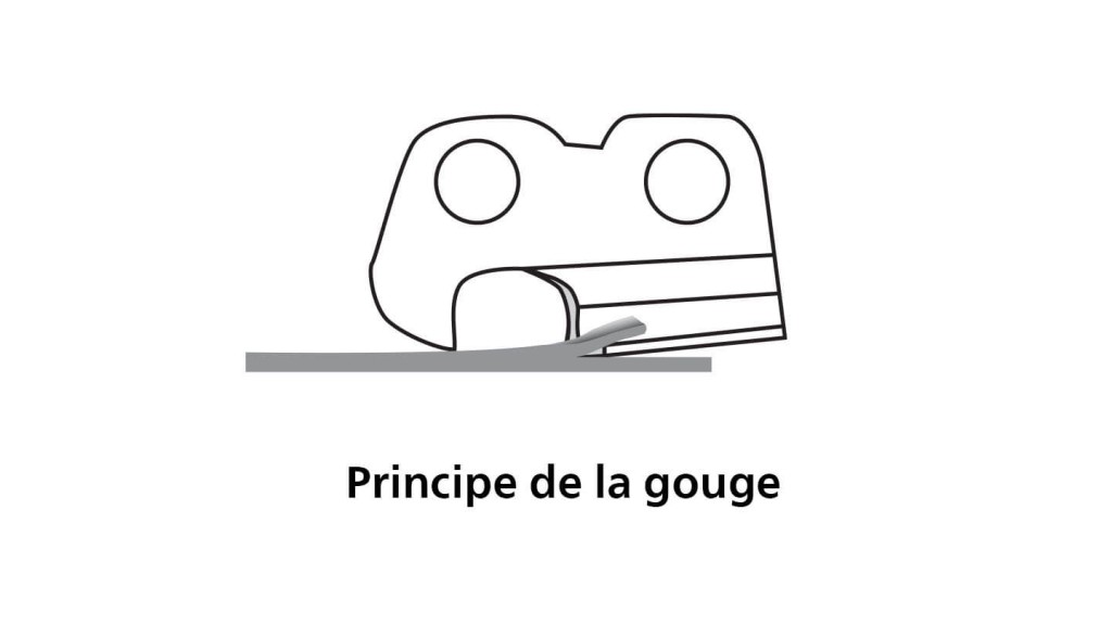 La chaîne d’une tronçonneuse fonctionne selon le principe du ciseau à bois. Les copeaux sont littéralement « rabotés » hors du matériau.
