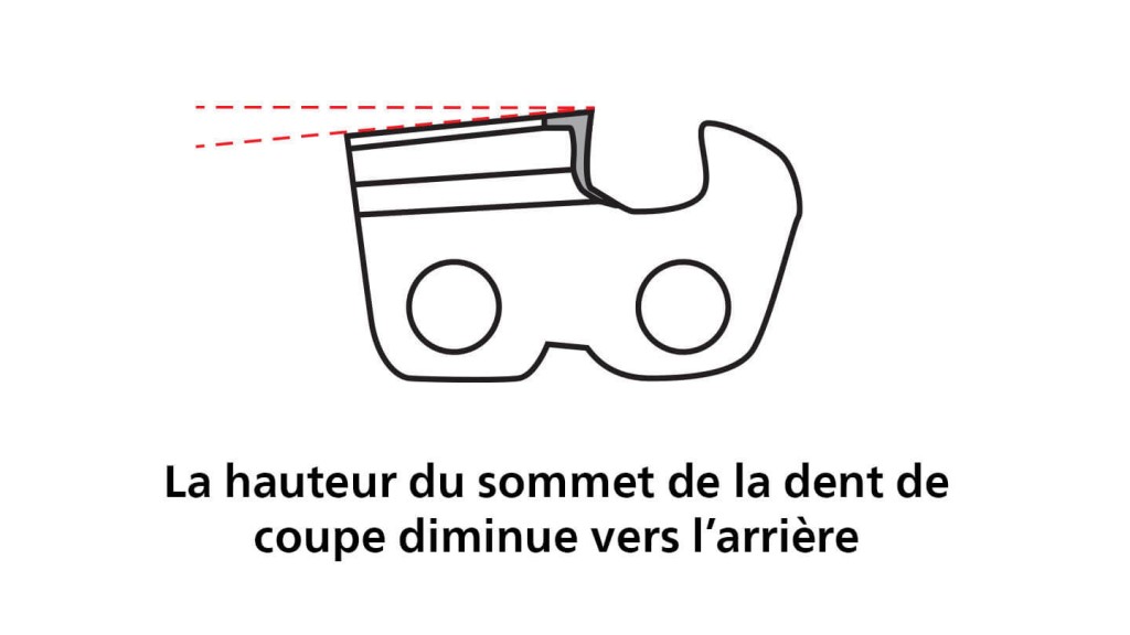 Comme les angles de dépouille empêchent tout contact superficiel avec le bois, la chaîne de tronçonneuse ne peut pas se coincer pendant le processus de coupe.