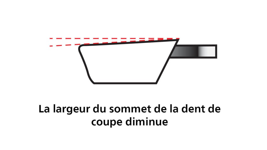 Un affûtage professionnel n’est garanti que si la forme de la dent est connue et que les angles correspondants sont respectés.